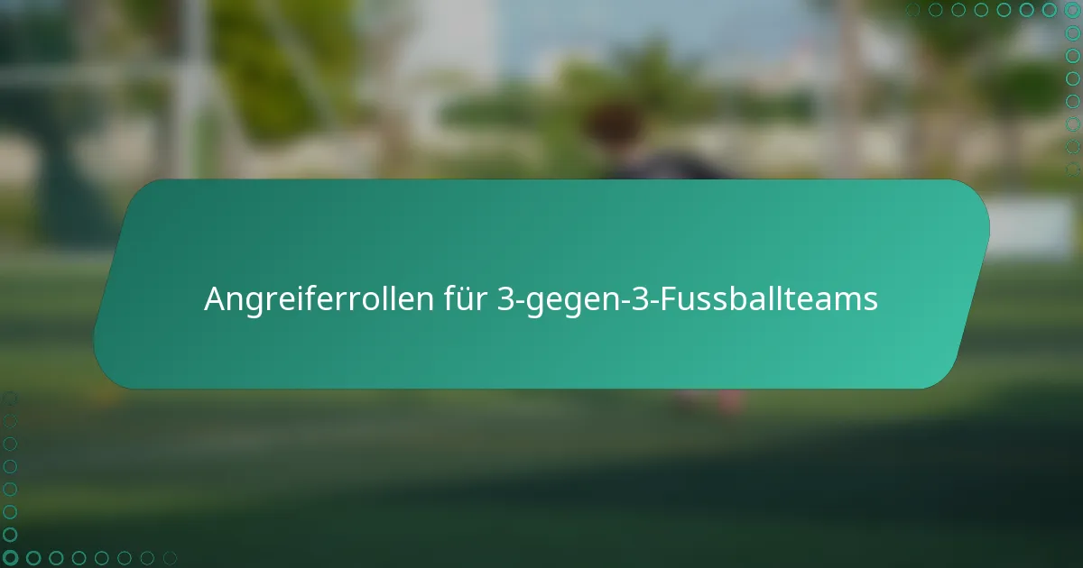 Im 3-gegen-3-Fussball sind die angreifenden Rollen entscheidend, um Torchancen zu generieren und den offensiven Schwung aufrechtzuerhalten. Die einzigartigen Verantwortlichkeiten und Fähigkeiten jedes Spielers spielen eine bedeutende Rolle für den Erfolg des Teams und betonen die Notwendigkeit schneller Entscheidungen und einer effektiven Raumnutzung auf dem Spielfeld.