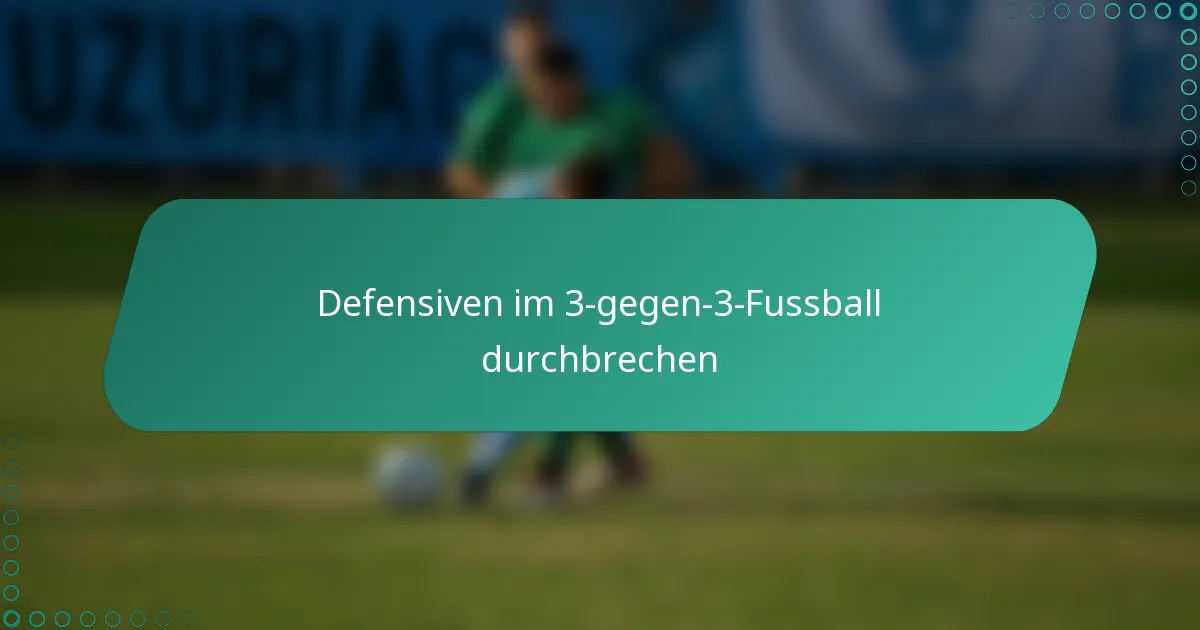 Das Durchbrechen von Abwehrreihen im 3-gegen-3-Fussball erfordert ein gutes Verständnis verschiedener Abwehrformationen und die Fähigkeit, die Taktik entsprechend anzupassen. Durch schnelles Passspiel, effektives Dribbling und strategische Positionierung können Spieler numerische Vorteile schaffen und Lücken in der Abwehr ausnutzen. Häufige Fehler wie das Übercommitment zu individuellen Aktionen und das Vernachlässigen der Teamkommunikation können jedoch die Tormöglichkeiten und die Gesamtleistung beeinträchtigen.