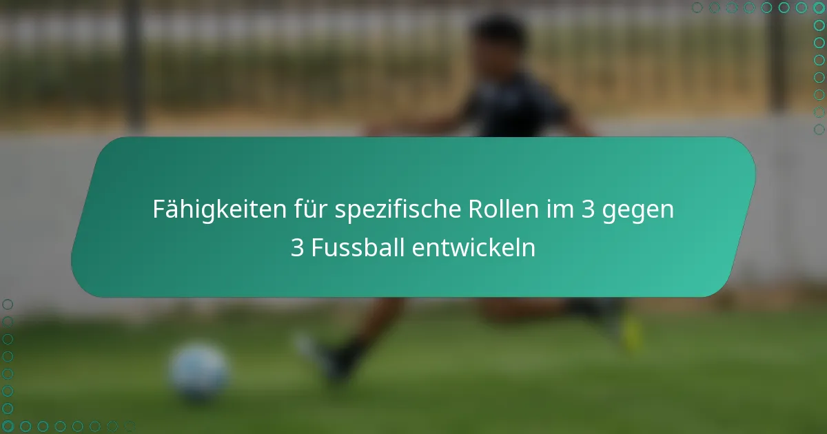 Die Entwicklung spezifischer Fähigkeiten für jede Rolle im 3-gegen-3-Fussball ist entscheidend, um die Teamleistung zu maximieren. Verteidiger müssen sich auf Positionierung und Kommunikation konzentrieren, während Mittelfeldspieler ihre Ballkontrolle und Spielintelligenz verbessern sollten. Stürmer müssen ihre Abschluss- und Bewegungsstrategien verfeinern, um sowohl zur Offensive als auch zur Defensive effektiv beizutragen.