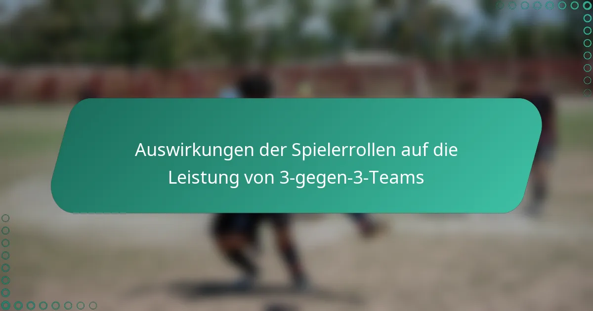 Spielerrollen beeinflussen die Teamleistung in 3-gegen-3-Spielen erheblich, indem sie Verantwortlichkeiten definieren, die die Gesamtwirkung verbessern. Jede Rolle – defensiv, im Mittelfeld und offensiv – trägt auf einzigartige Weise zur Stabilität, Kontrolle und Torgefahr bei und prägt letztendlich den Erfolg des Teams auf dem Spielfeld.